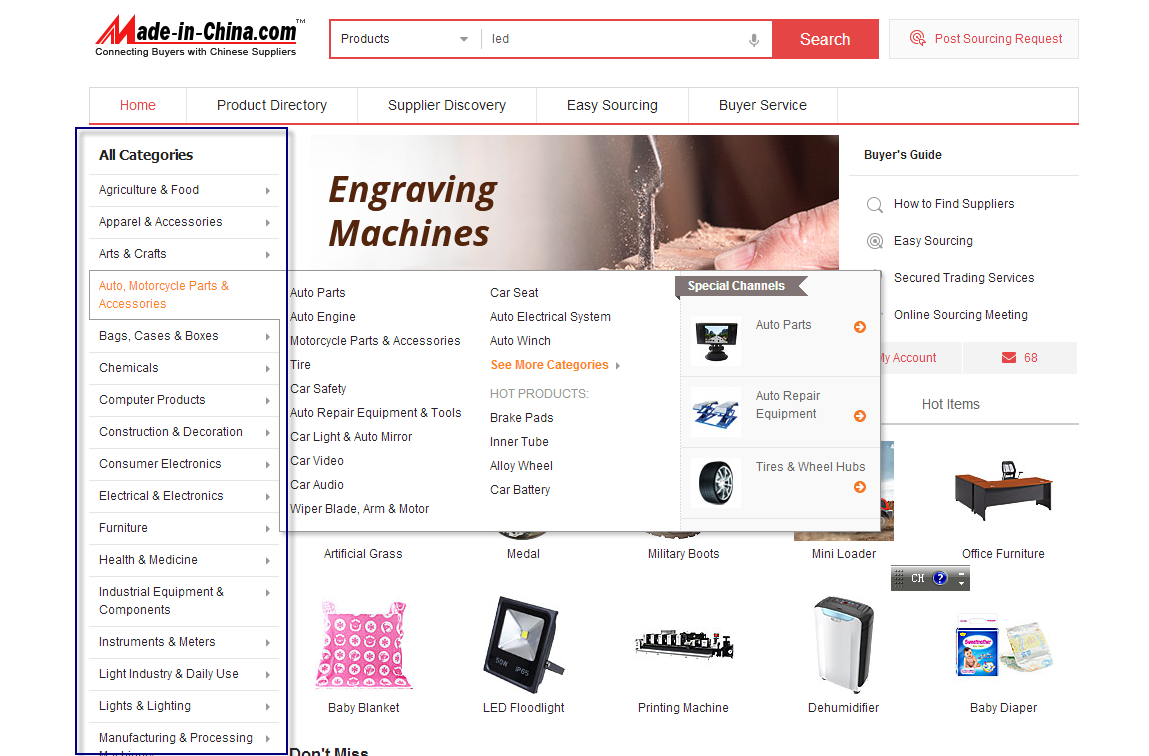![]() 2. Use product directory. Made-in-China.com has classified products and suppliers into 27 categories. You can select appropriate categories to narrow down search results. ![]() |